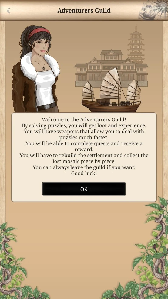 Quick access bar allows to quickly access certain sections (described above) in the guild. It can be shown/hidden by tapping the "+"/"-" icon in the top right corner. Icons for tabs are only displayed in the quick access bar if they are unlocked. If the screen is too small to fit in every icon, icons are cut off and the quick access bar becomes horizontally scrollable. The quick access bar hides when in: Expedition, Shop, Bourse, Cauldron, Tavern or Hall of Fame. Image of ship and expedition can be seen in the background in the top right corner.