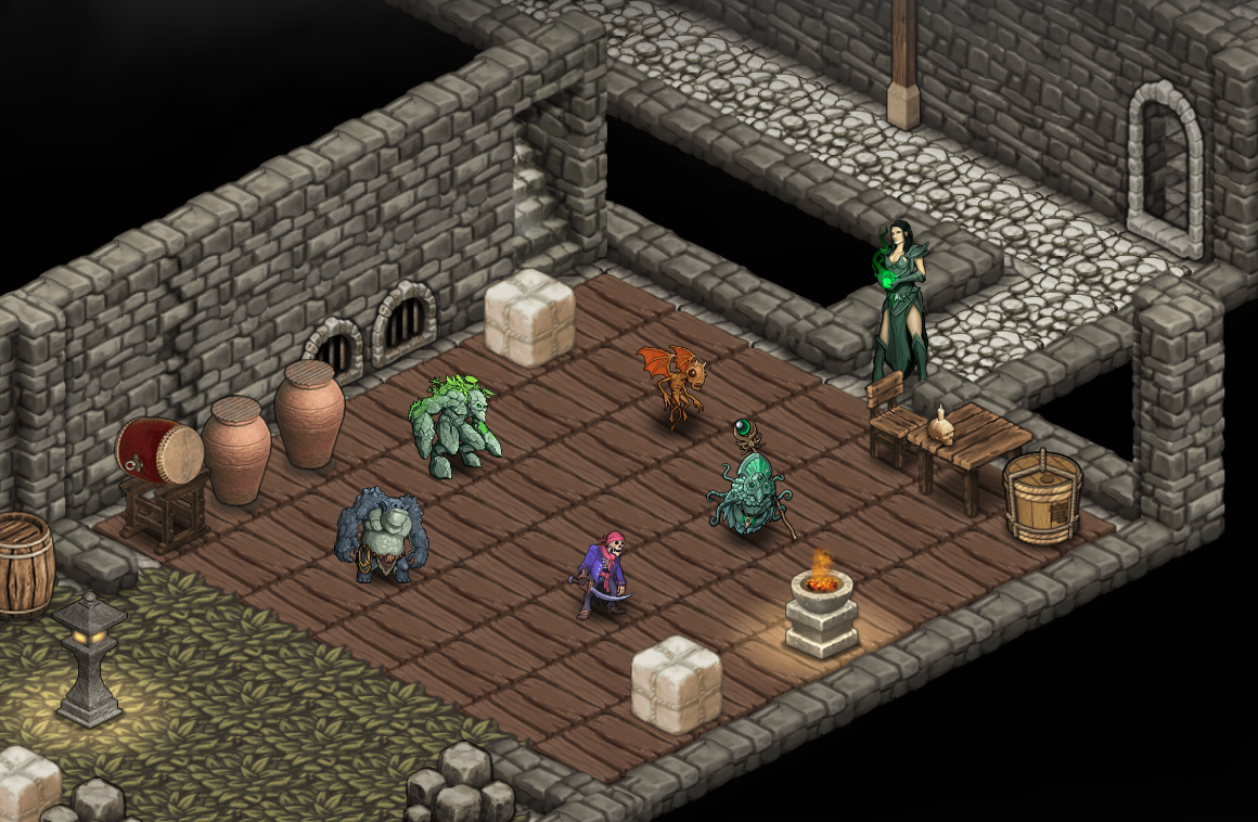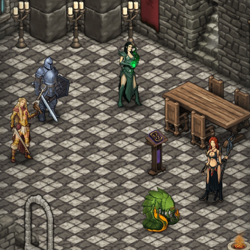 The first room the hero enters is filled with the player's top 3 heroes (either the first 3 favorites, or the 3 highest level ones if none have been selected as favorites). If one of those three is the one that enters the citadel, the 4th top hero is chosen instead (so that the chosen hero does not appear repeated). These 3 heroes can be interacted with and based on their position they say the same thing. If the hero has a familiar(s) equipped, the first familiar will also appear in this first room (even if the familiar is not fed).