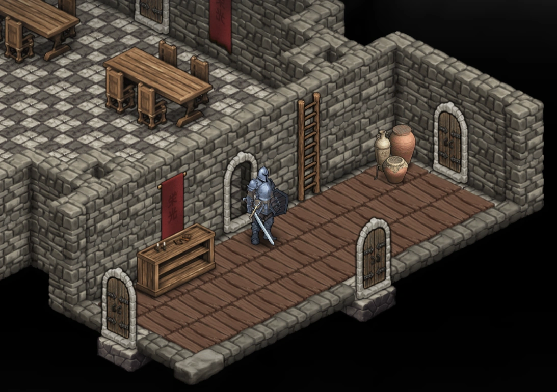 Even though the Citadel is positioned with/above all other dungeon levels, it doesn't function like normal dungeon level. Brick doors and other usually interactable objects can't be destroyed. The hero enters the citadel without any food items. The layout of the citadel is always the same. The wooden doors that were opened on the previous visit are now closed and have to be opened again. When the hero exits the citadel, they don't need to rest. The citadel can be visited as many times as needed, even by a hero that is currently resting. Citadel can only be visited when there is no hero in the Dungeon.