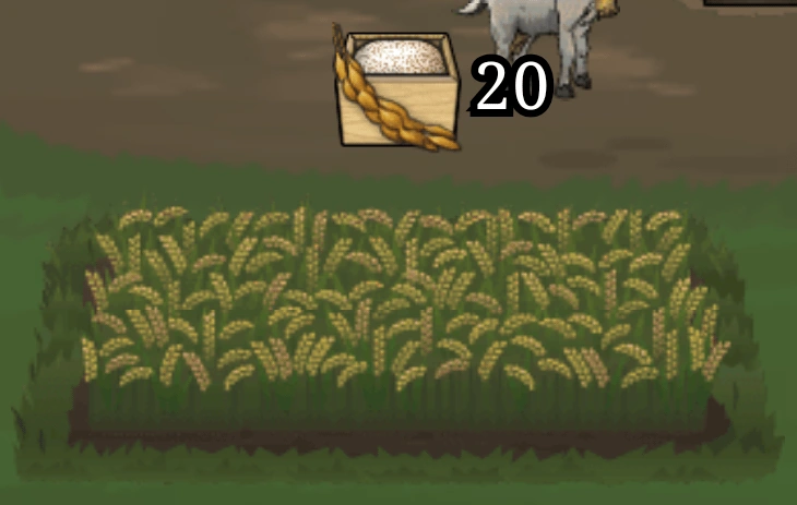 Farming is a process that can be levelled up to lvl. 5. Each level of farming increases the amount of Rice and Wheat produced by 1. First Rice or Wheat can be obtained in Dungeon or bought in Shop. First Soybean is rewarded for completing the Magic Beans quest - later it can be bought in Shop (once the shop cycle resets). To level up farming a certain amount of Rice, Wheat or/and Soybean has to be produced.
