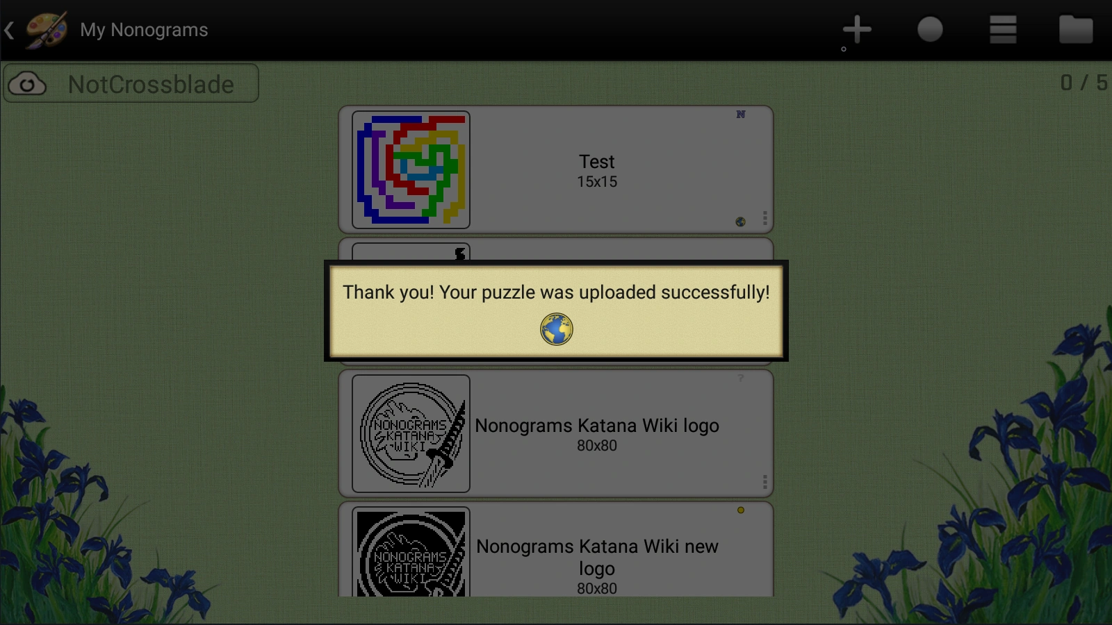 Picture 4: After you have uploaded successfully your nonogram, this prompt appears.