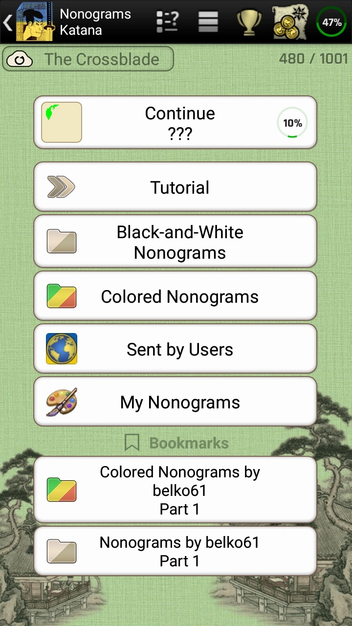 - Tutorial (a short tutorial on solving nonograms and the in-game user interface).