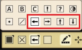 Note: The "ruler tool" measures the combined number of clues and spaces in between clues (this number is 4+3+1=8 in example 6). To draw arrows like in the examples above, you can choose either one out of four arrows in the User interface > mark > arrow - up, down, left or right (see image). When you tap in drag in one direction the game will automatically select you the right arrow (e.g., if you tap and drag to left, it will select the left arrow and the left arrow will be drawn).