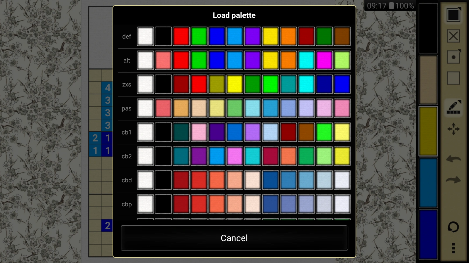 Sometimes it can be hard to tell colors apart, because they looks so alike. Double tap on any color and load the default color palette as this palette has colors which can be easily differentiated between each other.
